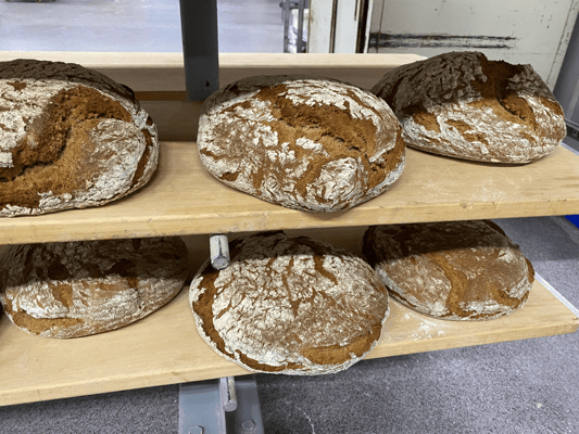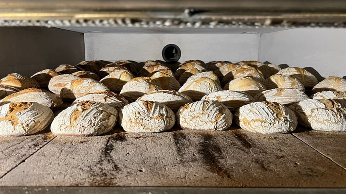 Das Brot wird auf dem Tuffstein gebacken, dieser nimmt die Feuchtigkeit des Brotteigs auf und gibt sie während des Backens wieder ab. So entsteht das typische Holzofenbrot mit der einzigartigen Kruste.
