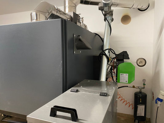 Mit manueller Sack-Befüllung, Zwischentank für 120 kg Holzpellets